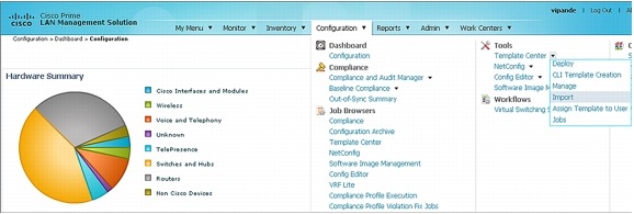 After the template is downloaded from cisco.com, the next step is to import the template into LMS using the import mode.