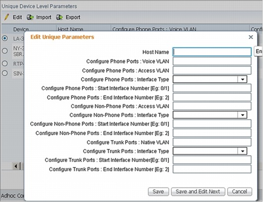 The next step allows you to enter unique values one at a time on a per-device basis. This mechanism is most efficient for up to 5 to 10 branch offices.
