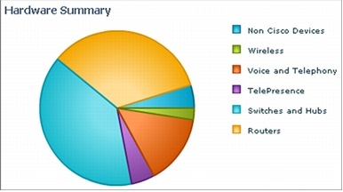 Tracking inventory is just as important as tracking the configuration changes. It is an important business function to maintain an accurate inventory of all devices on the network, including their types, installed options, and versions of software and configuration. Launching the Cisco Prime LMS Inventory dashboard quickly gives a high-level overview. You can see how many routers and switches are in the network. The graphs are clickable to further examine each type of device to see specific chassis, where it is located, and other basic system information. You can collect similar MIB-2 derived information for third-party devices as well.