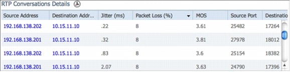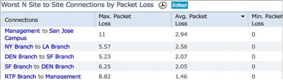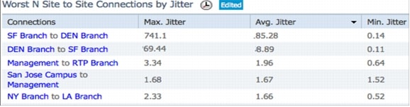 Similar to end-to-end application views, views are also available for end-to-end service performance such as Voice/Video service. The Voice/Video Dashboard shows site-to-site key performance indicators that affect service quality such as jitter and packet loss. In a large network the Cisco Prime Assurance Manager can provide service health between sites, and the Cisco Prime Collaboration Manager can be used to troubleshoot specific video sessions and identify exactly where the jitter/packet loss is getting injected between the sites.