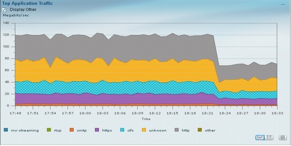 The following screenshot shows the change in traffic rate after applying traffic shaping: