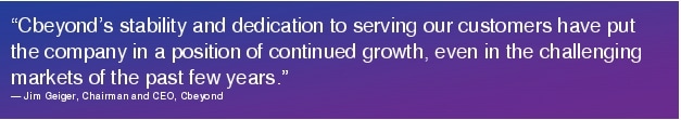 See quote source. The context of Mr. Geiger's comments are based on the news that Cbeyond Inc. was recognized as the 11th fastest-growing public company in Georgia by the Atlanta Business Chronicle (June 2010). The communications and IT solutions provider was also ranked one of the top 10 Georgia companies for both employment expansion and revenue growth from 2007 to 2009.