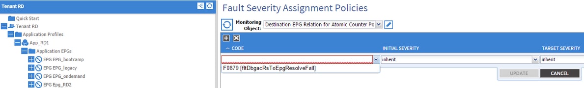 dn : uni/tn-RD/ipToEpg-Ext_10.200.1.101/rstoEpg-[uni/tn-RD/ap-App_RD1/epg-EPG_RD11]/fault-F0879