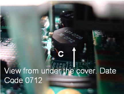 Refer to Figure 3 for inductor location 'A', figure 4 is L25 inductor with date code 0712 is good inductor. Inductor in location B and C shown for reference only in figure 5 and 6 respectively.