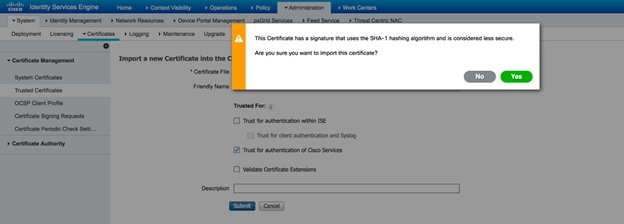 | CSCvh50630 | Adding Hydrant certificate chain to ISE default trust certificate store |