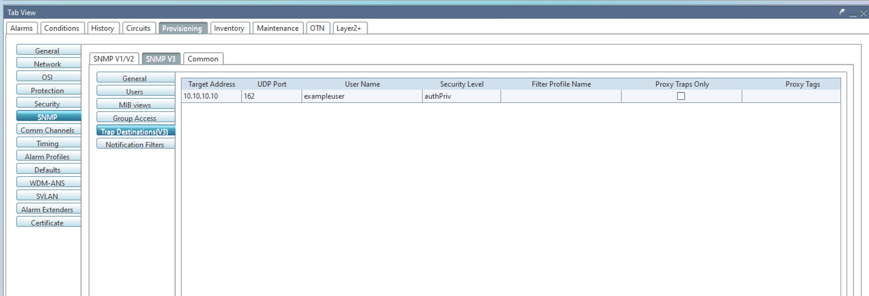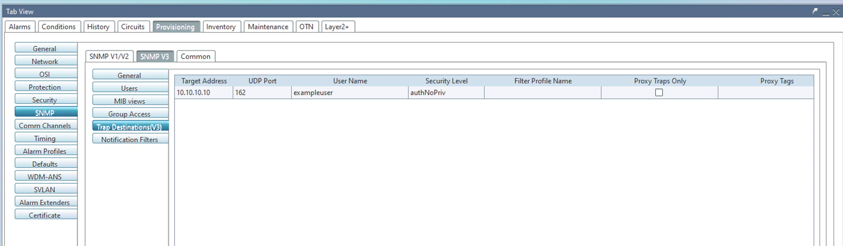 The following images show the sample SNMPv3 configuration with AuthNoPriv mode: