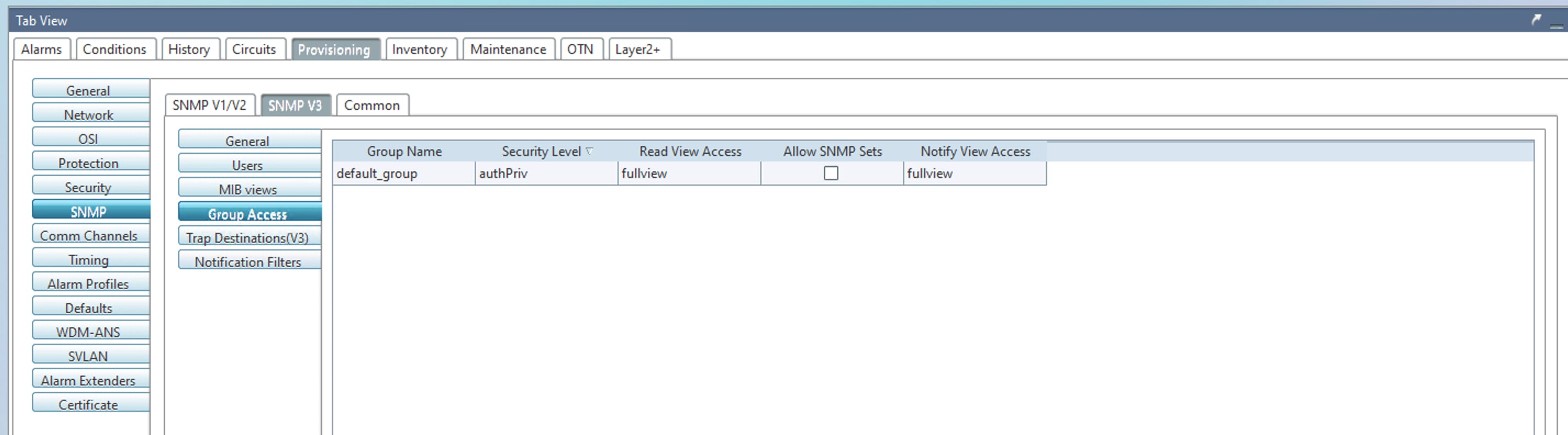 When Cisco NCS2K Series nodes with SNMPv3 configured in AuthPriv mode are upgraded to Release 11.14, node controller cards undergo consecutive roll reboots. As a result, the affected nodes become unreachable. The impacted configuration is illustrated in the following images.