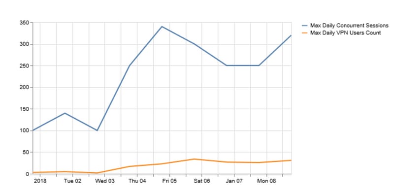 Analyze the daily maximum VPN users and maximum concurrent connections that can help determine the need to optimize the VPN settings.