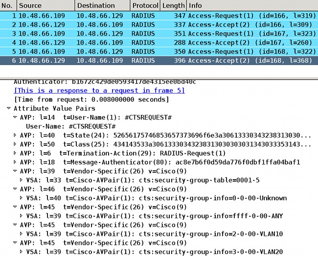 In order to learn the mapping between Security Group Tags (SGTs) and IP addresses, the ASA uses the SGT Exchange Protocol (SXP). Then, Access Control Lists (ACLs) based on SGT are used in order to filter the traffic. The 3750X downloads Role-Based Access Control List (RBACL) policies from the Cisco Identity Services Engine (ISE), and filters traffic based on them. This article details the packet level in order to describe how the communication operates and the expected debugs.