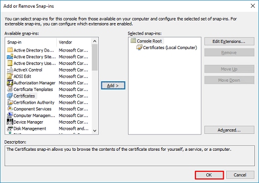 In this configuration guide, the FQDN is win2016.example.com and so the first 2 certificates are not valid for use as the LDAPS SSL certificate. The identity certificate issued to win2016.example.com is a certificate that was automatically issued by the Windows Server CA service. Double Click the certificate to check the details.