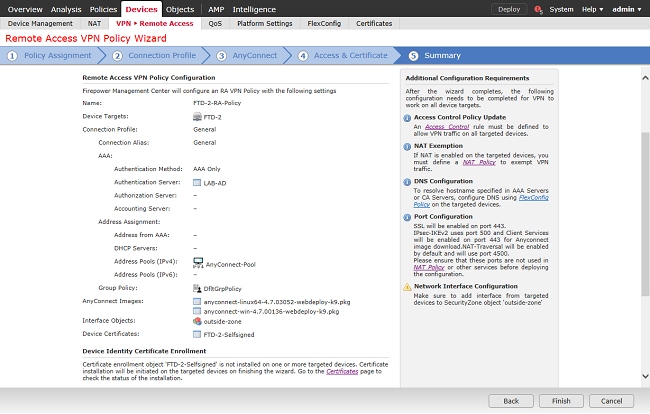 In order to deploy AnyConnect configuration, the FTD needs to be registered with the smart licensing server, and a valid Plus, Apex, or VPN Only license must be applied to the device.
