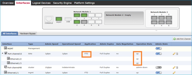 Step 1. Verify the interfaces that are already assigned to the FTD logical device.