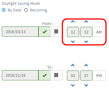 Step 9. In the field after the calendar icon, click the up or down arrow to choose the time of the day you want DST to begin.