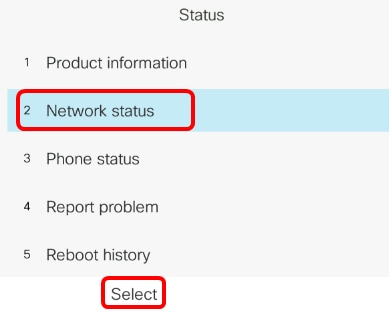 Step 3. Navigate to Network status and press the Select softkey.
