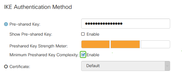 Note: In this example, Minimum Pre-shared Key Complexity is left enabled.