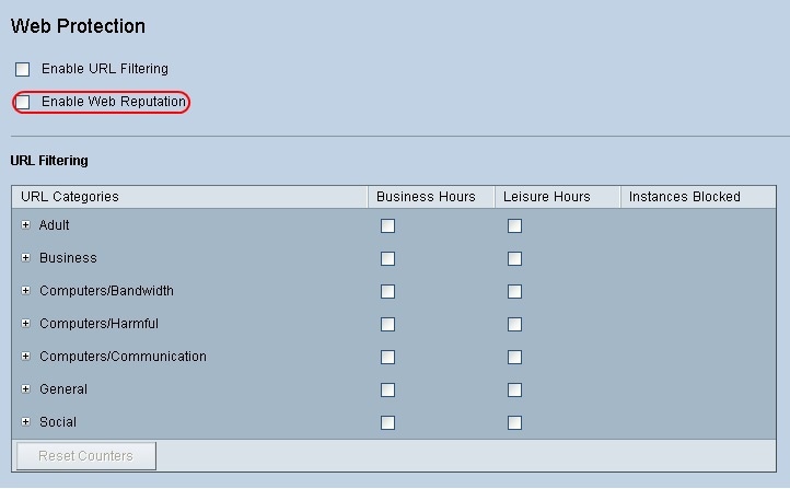 Step 1. Check the Enable Web Reputation check box to enable Web Reputation.