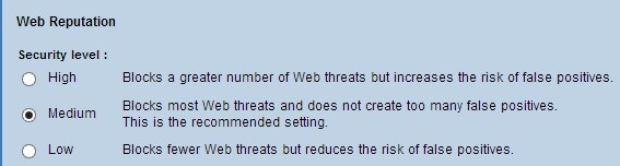 Step 2. Scroll down to the Web Reputation field and click the radio button of the appropriate security level.