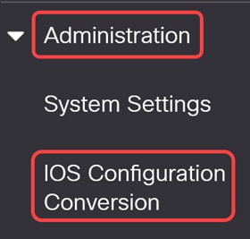 Navigate to the Administration > IOS Configuration Conversion menu.