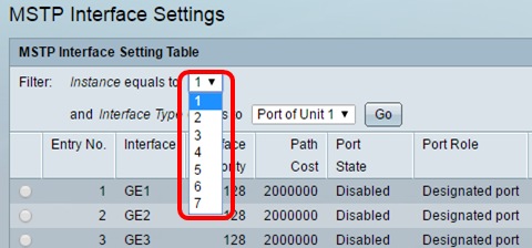 Step 3. (Optional) From the MSTP Instance ID drop-down list, choose an MSTP Instance to edit.