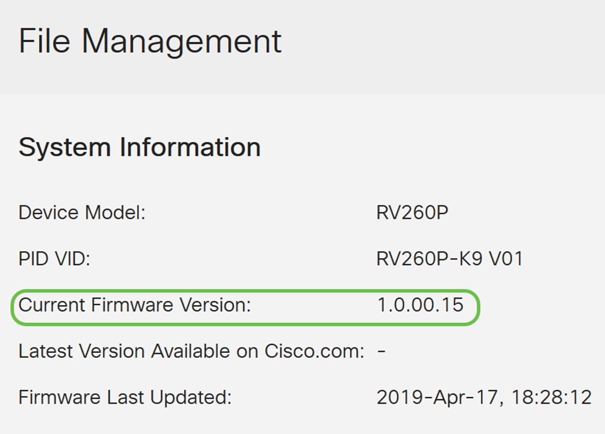 Log back into the web-based utility to verify that the router firmware has been upgraded, scroll to the System Information. The Current Firmware Version area should now display the upgraded firmware version.