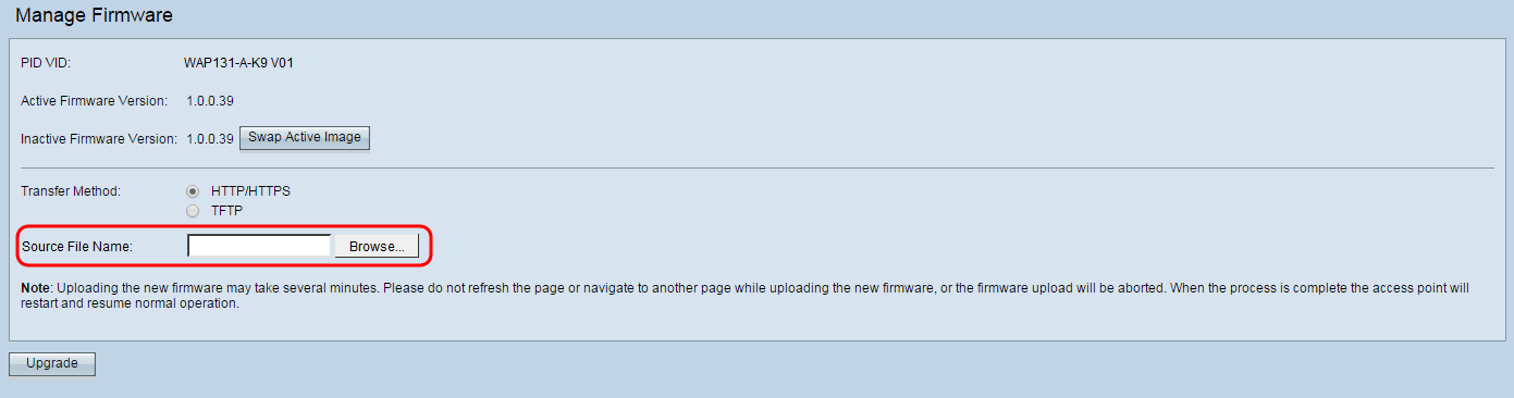 Note: When you upgrade the firmware, the WAP device retains the existing configuration information.