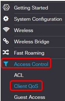 Step 1. Log in to the web-based utility of the WAP125 and choose Access Control > Client QoS.