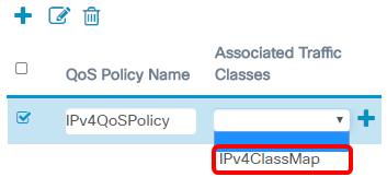Step 8. (Optional) Click the button under Associated Traffic Classes to add class maps to the policy.