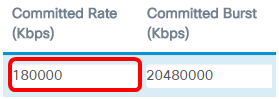 Step 6. Enter the committed rate in the Committed Rate field. This is the rate in Kbps to which traffic must conform to. It is the data rate that is guaranteed all the time for the user, regardless of the number of users present in the network. The range is from 1 to 1000000 Kbps.
