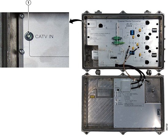 Step 1 | Remove the coaxial cable from the F-connector installed in the RF port. | ||||