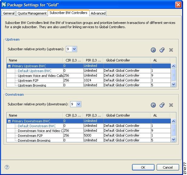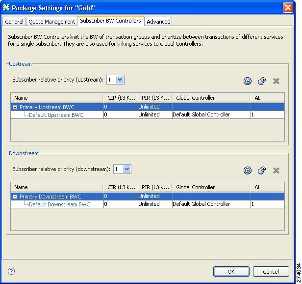 In the Package Settings dialog box, click the Subscriber BW Controllers tab.