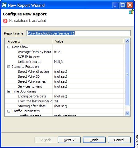 The default report name is VLink Bandwidth per Service #1. (If you create another report instance from this report template, it is named VLink Bandwidth per Service #2, and so on. You can rename report instances.)