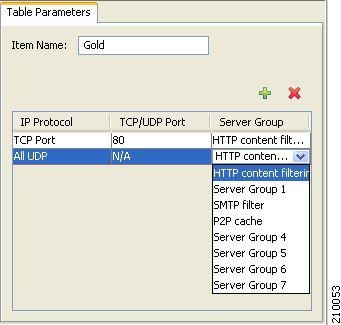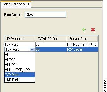 From the table in the Table Parameters tab, select a protocol, port, and server group.