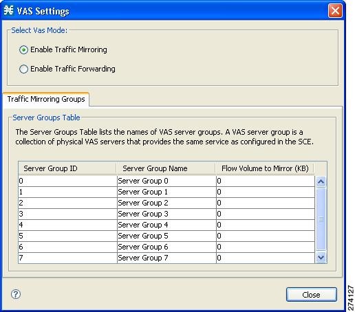 An SCE platform can forward flows to up to eight different VAS server groups. By default, the eight server groups are named "Server Group n", where n takes a value from 0 to 7 and corresponds to the number you assigned to the server group when you created it using the SCE platform CLI.