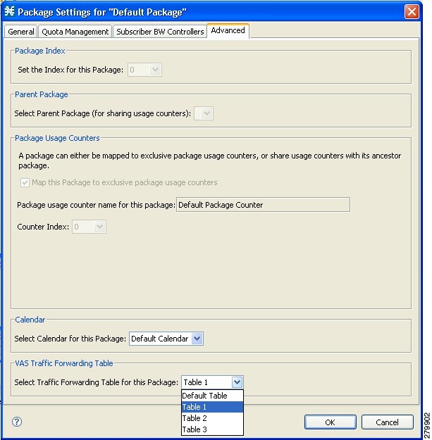 A default traffic-forwarding table is included in the service configuration. You can add up to 63 more traffic-forwarding tables, and then assign different traffic-forwarding tables to different packages.