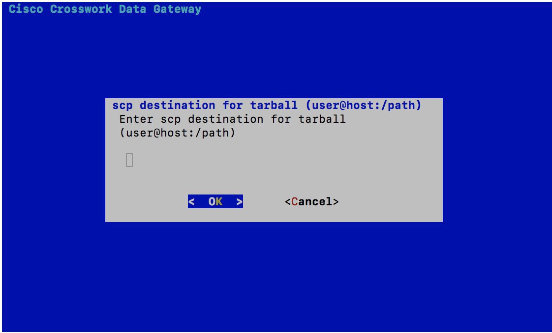 Click OK. The Crosswork Data Gateway prompts you to enter the destination for the tarball. ![]() |