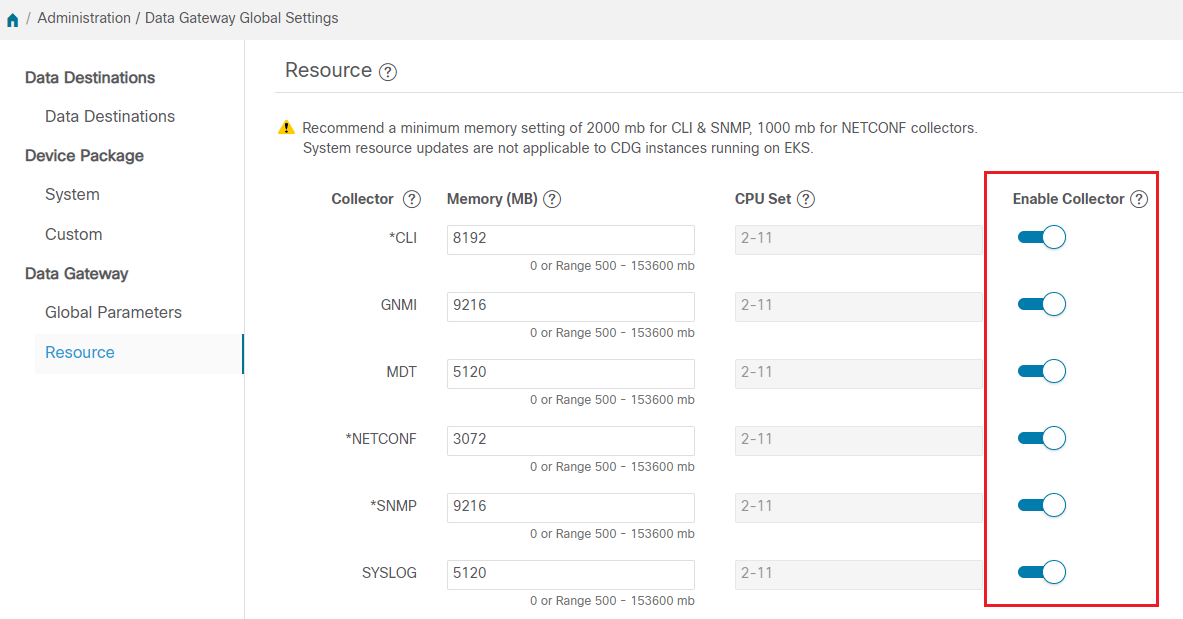 Data Gateways Instances: Manages physical Cisco Crosswork Data Gateway instances.