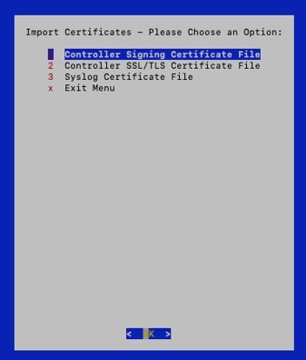 This is needed only if you have not specified Controller Signing Certificate File URI under the Controller Settings in the OVF template. Otherwise, the file will be automatically imported after the VM boots. |