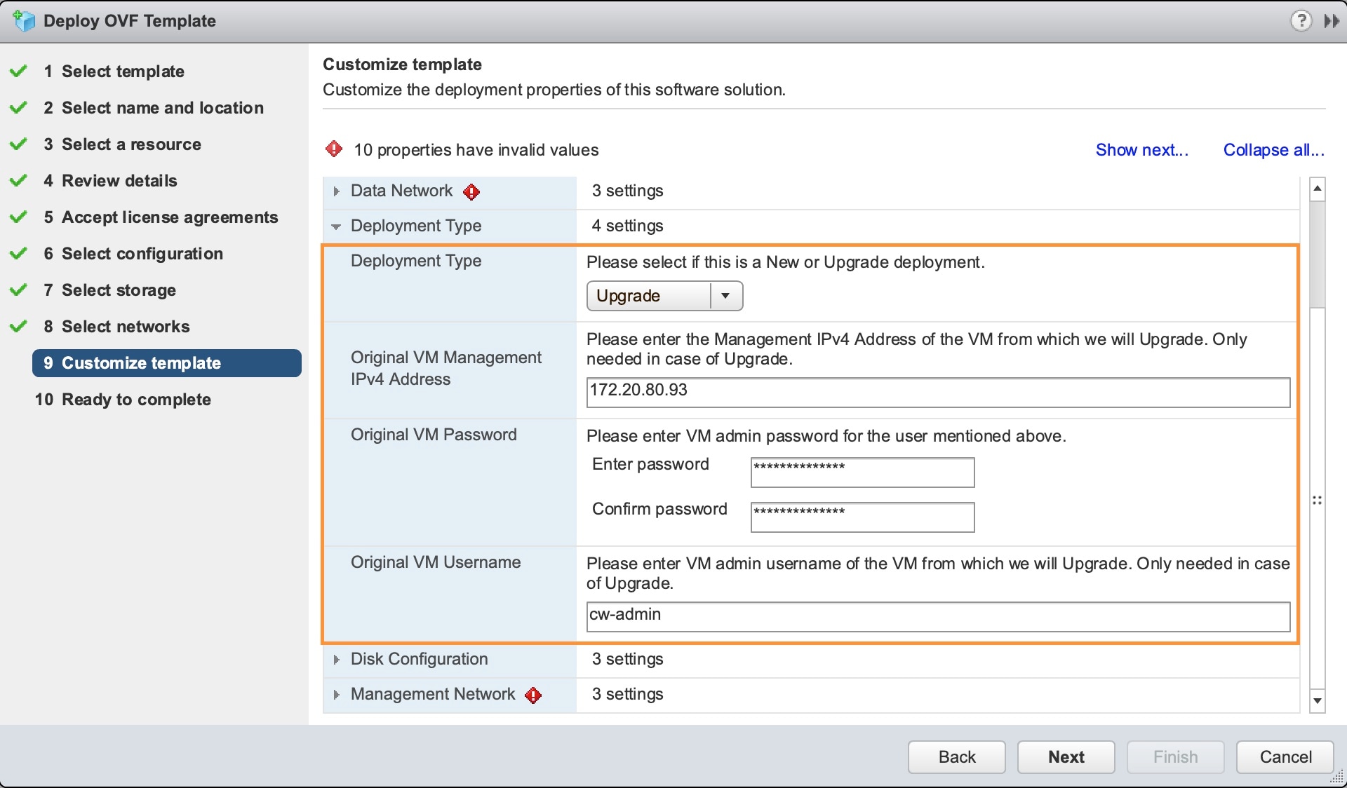 Expand the Deployment Type settings, as shown in the following figure. In the Deployment Type dropdown, select Upgrade, and make relevant entries for the following fields: