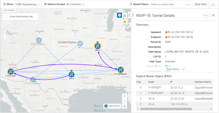With network automation, the objective is to automate the feedback loop to enable quicker reaction to and remediation of network events. With Crosswork Network Controller, network operators can orchestrate L2VPN and L3VPN services across the transport network, via a programmable interface, in a very quick and efficient manner. Segment routing traffic engineering (SR-TE) polices can be configured to continuously track network changes and automatically react to optimize the network. These SR-TE polices can serve as the underlay configuration for the VPN services to automatically maintain the SLAs.