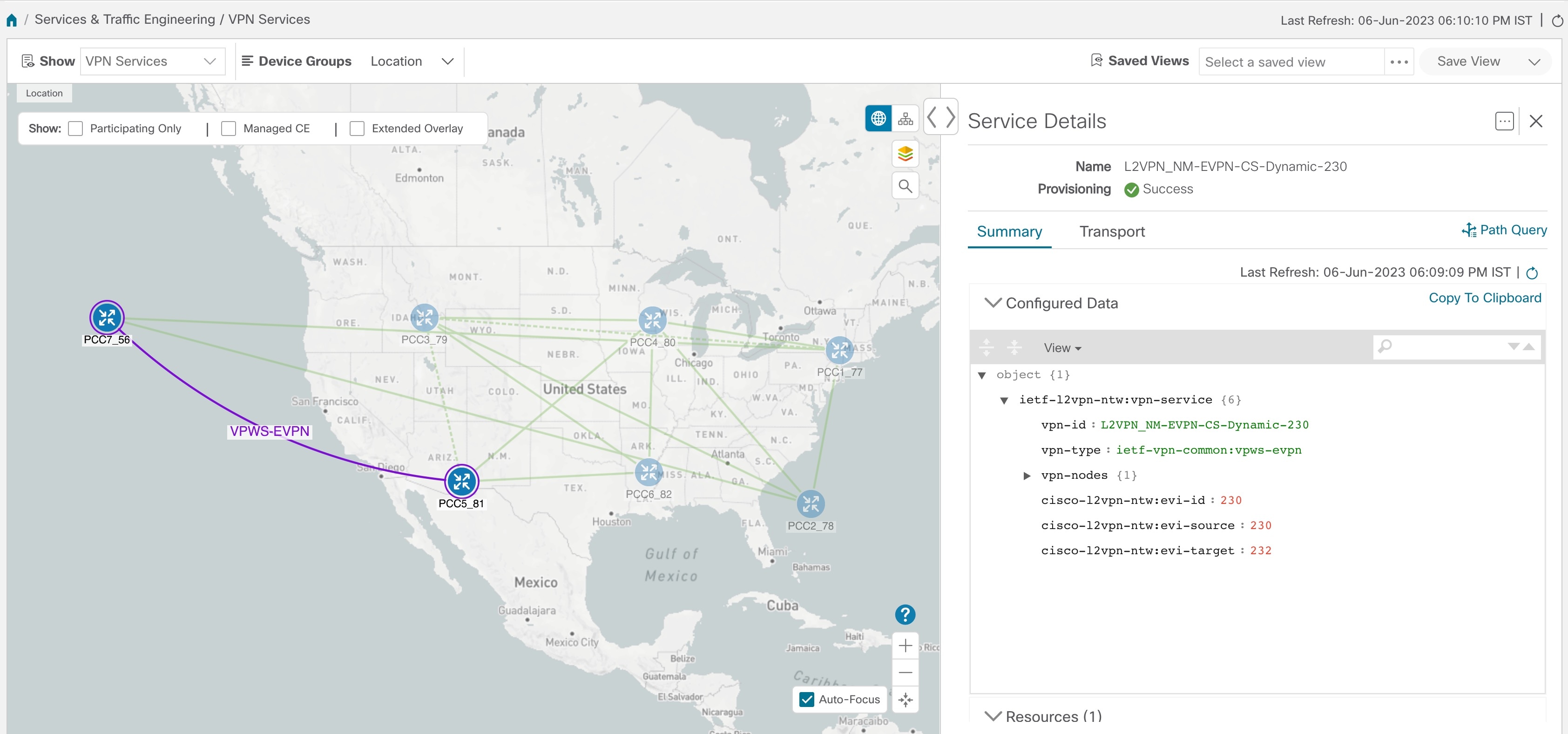 During the provisioning process for the above steps, Cisco Network Services Orchestrator configures the SR-TE policy and the VPN service on the specified endpoints.