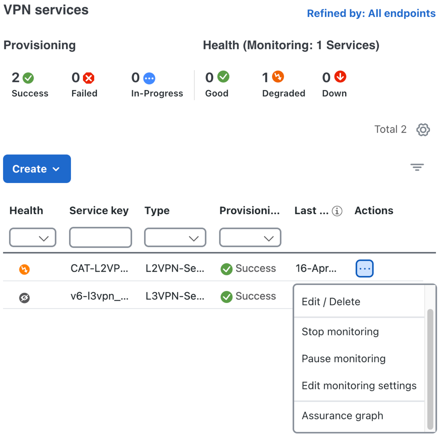 The following procedure assumes that you have already provisioned L2VPN and L3VPN services. To create and provision services, refer to the Orchestrated Service Provisioning chapter in the Cisco Crosswork Network Controller 7.1 Solution Workflow Guide.