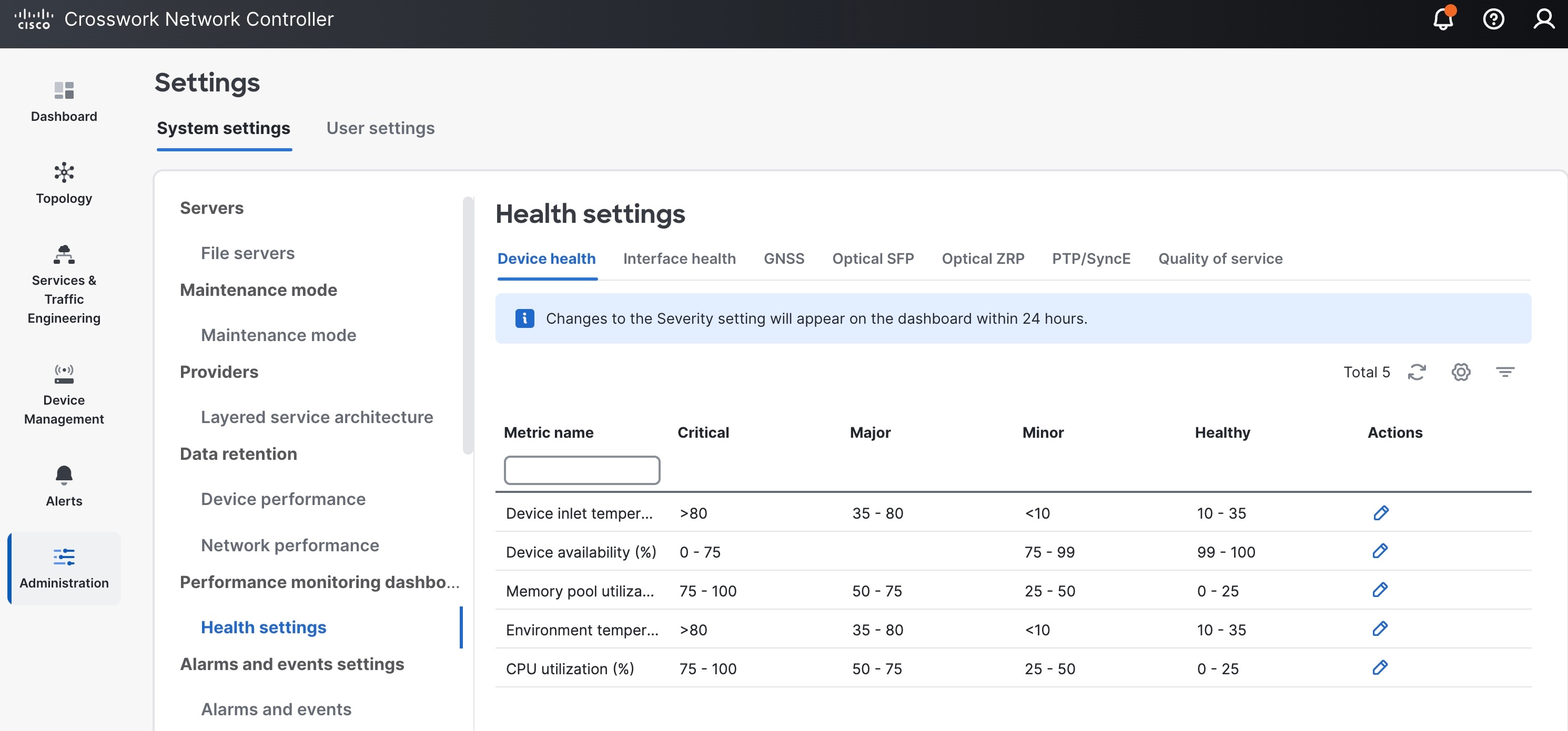 Enabled by default: LSP traffic and Interface health policies are enabled by default in Crosswork Network Controller from version 7.1 onwards.