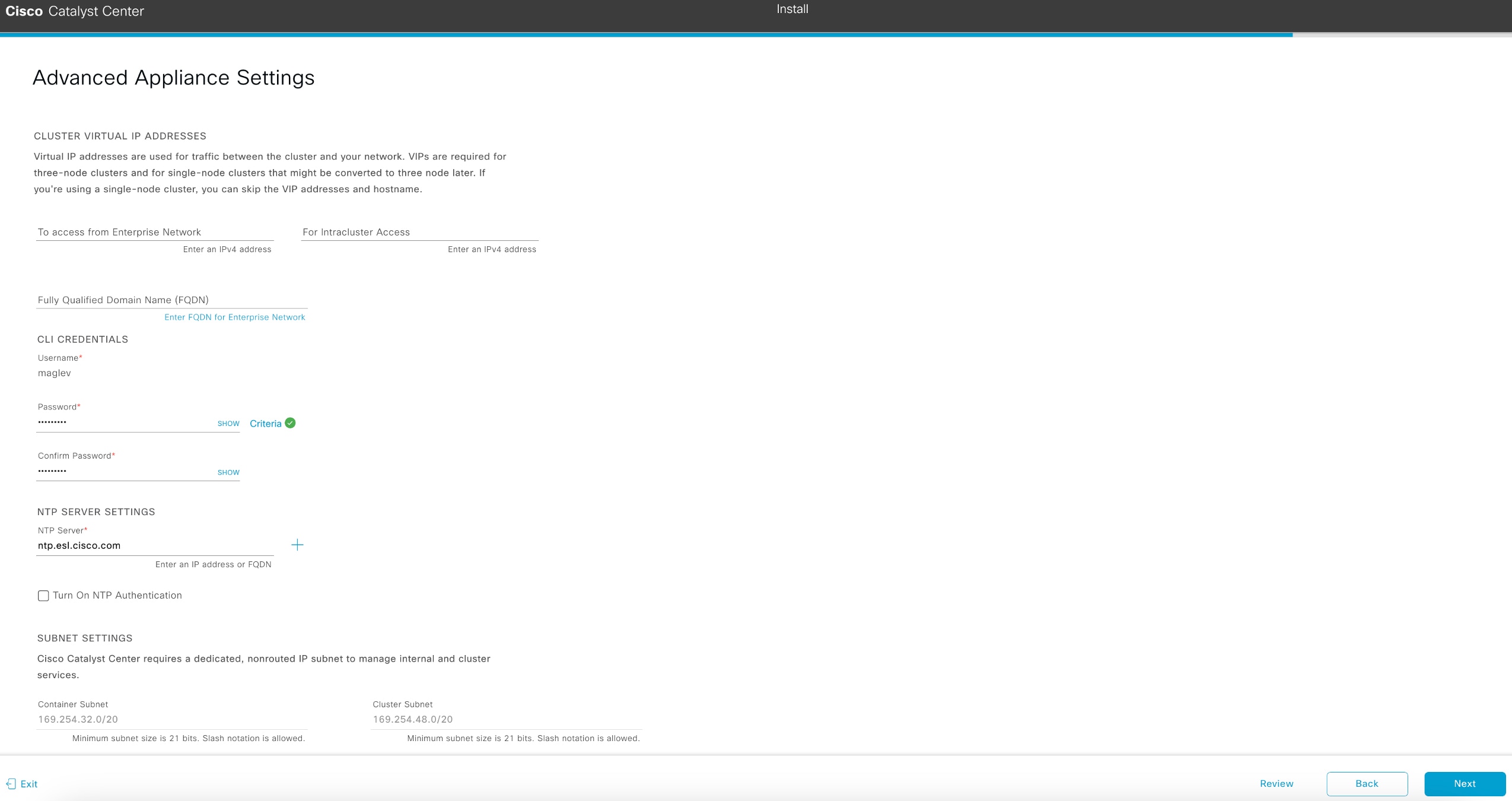 You can only use this wizard to complete the initial configuration of a new Catalyst Center appliance. To reimage an appliance that's been configured previously, you will need to use the Maglev Configuration wizard (see Configure the Appliance Using the Maglev Wizard).