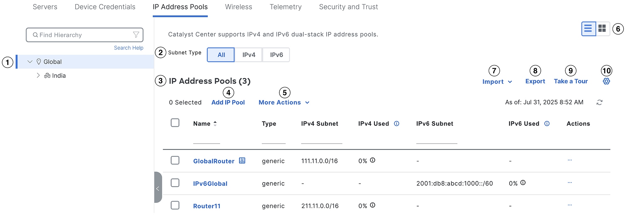 From the left hierarchy tree, select Global.