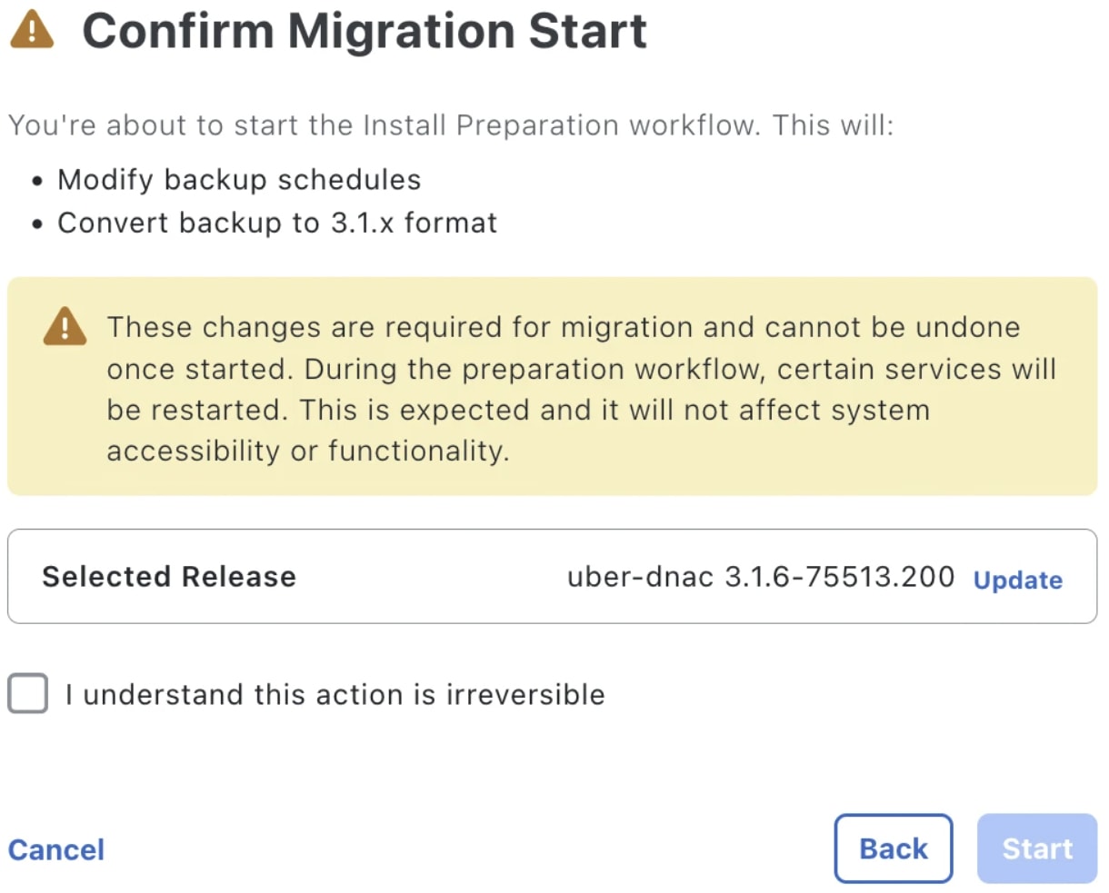 - Complete the Catalyst Center upgrade in one sitting to prevent the loss of configuration changes that are not picked up in a backup.