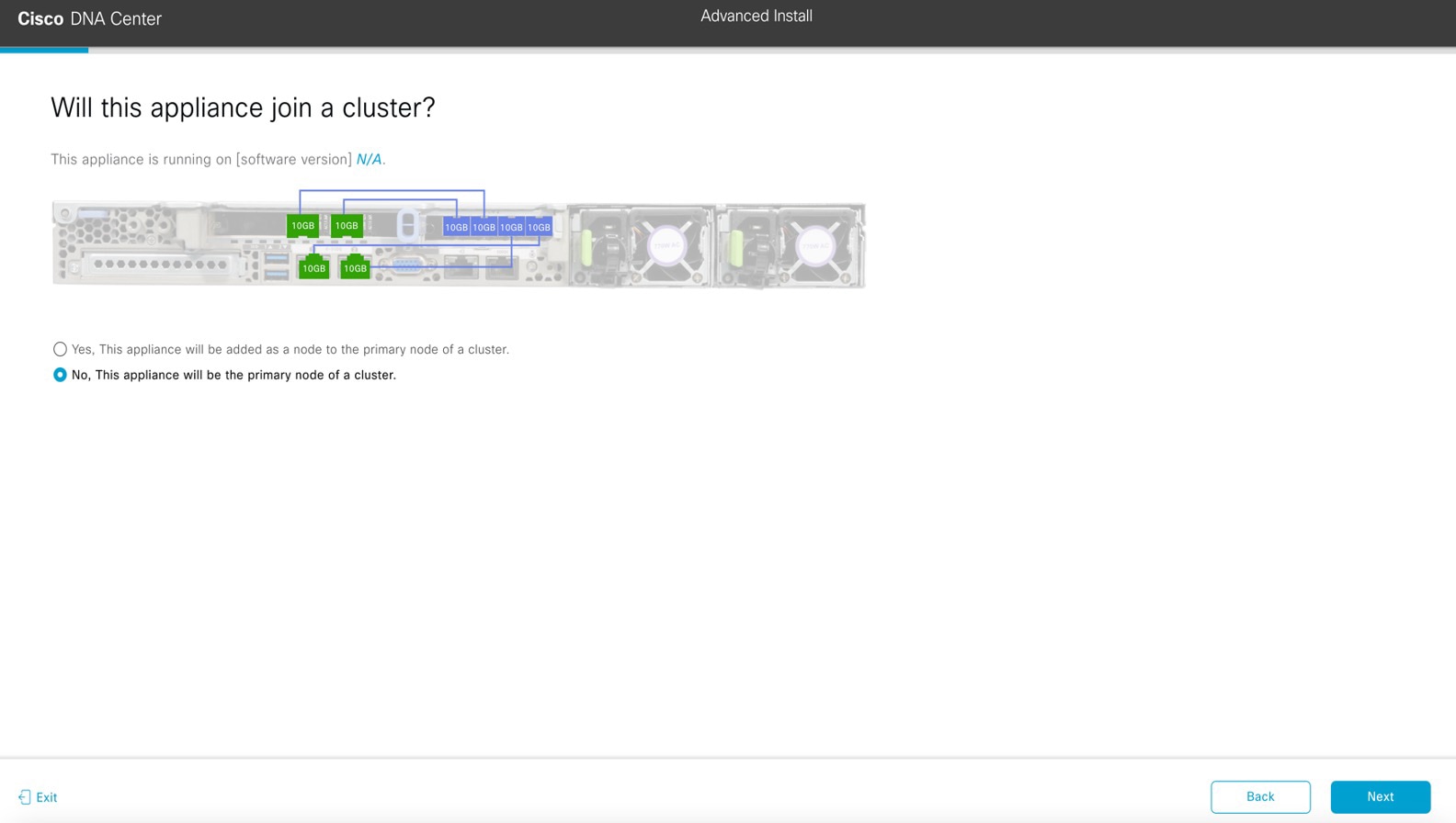 Click the No radio button (as you are configuring your cluster's primary node), then click Next.