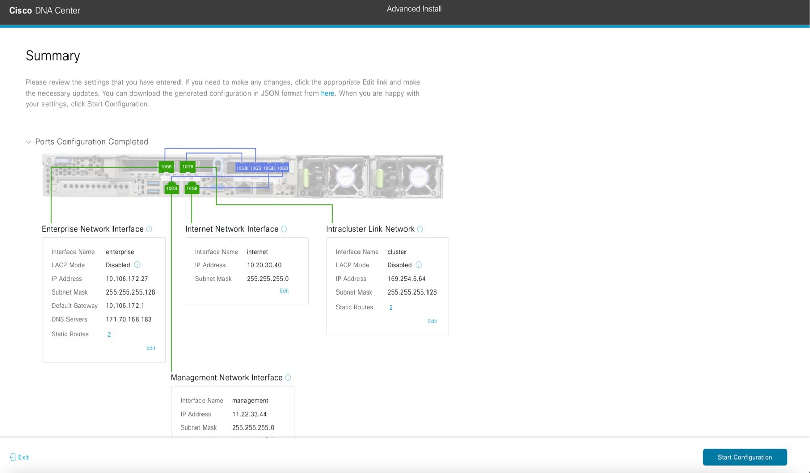 To complete the configuration of your Cisco DNA Center appliance, click Start Configuration.