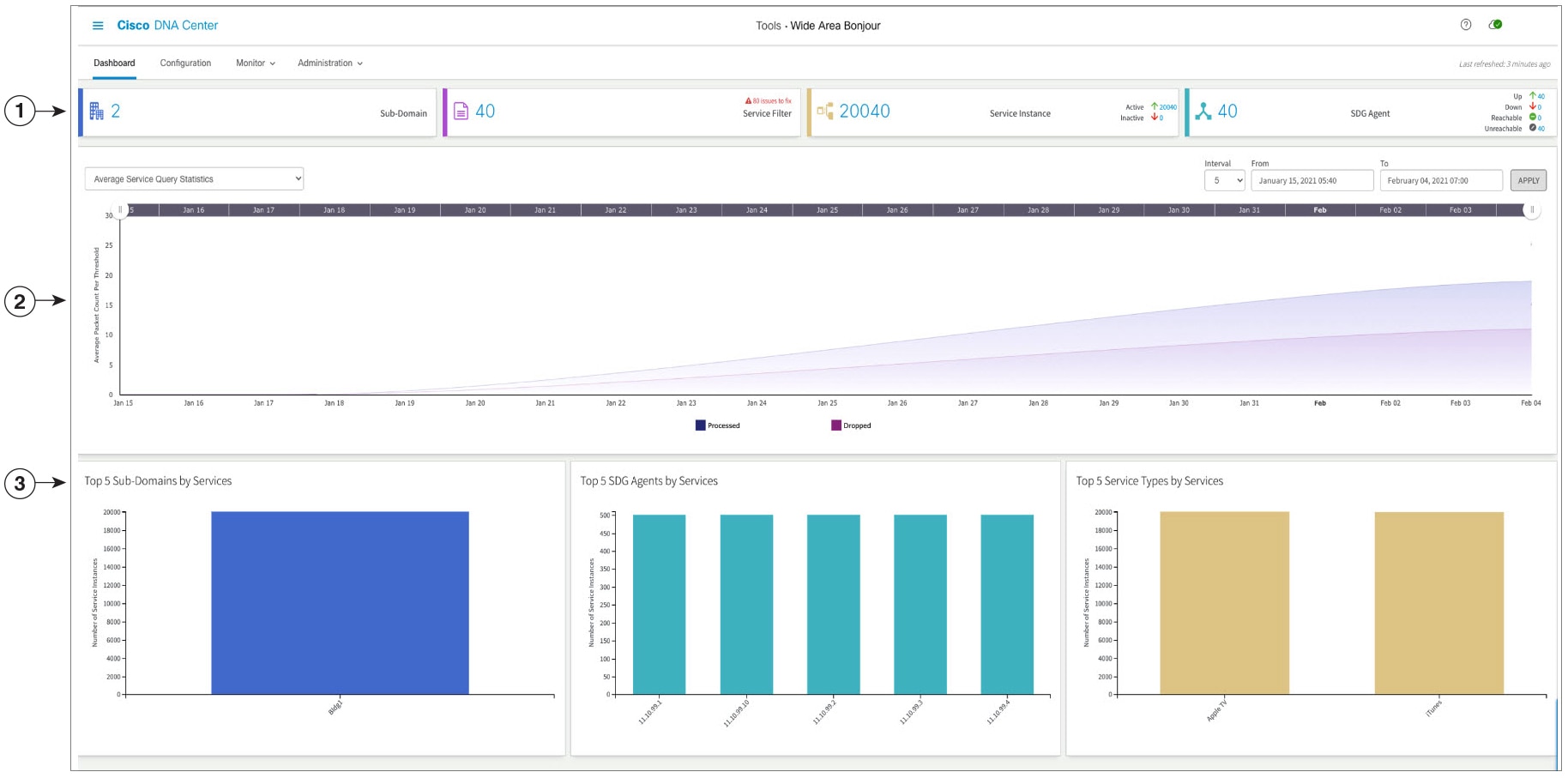 The Time-to-Live (TTL) value of mDNS service instance records announced by source SDG agent switches in the Wide Area Bonjour domain.