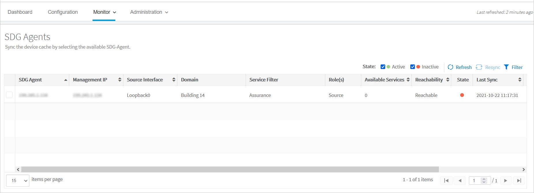 Check the check box to filter the service instance list by Inactive state. The default state is checked.