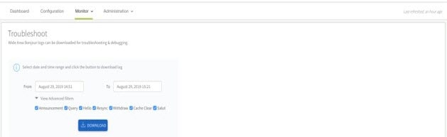 Active: The selected mDNS service instance is available with original source information and distributed when queried in the Wide Area Bonjour domain.
